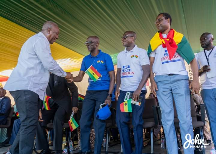 John Dramani Mahama, Presidential Candidate of the National Democratic Congress (NDC), suspended his campaign on Sunday to join leaders from the Ghana Pentecostal & Charismatic Council, the Christian Council of Ghana, the Office of the National Chief Imam, the Ghana Catholic Bishops Conference, and the National Association of Charismatic Christian Churches for the launch of a National Peace Campaign.