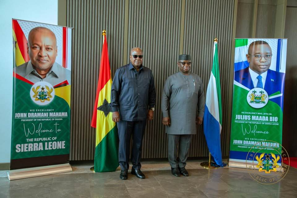 President John Dramani Mahama is in Sierra Leone for an official visit aimed at strengthening bilateral ties and advancing key areas of collaboration including trade, economic development, and regional cooperation.