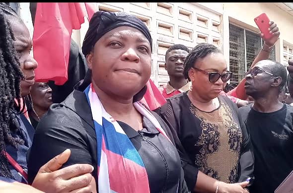 Dozens of party supporters in black and red clothing processed amidst the singing of solemn songs through the streets of Saltpond from the NPP office at the Saltpond junction to the EC office where she presented her forms.