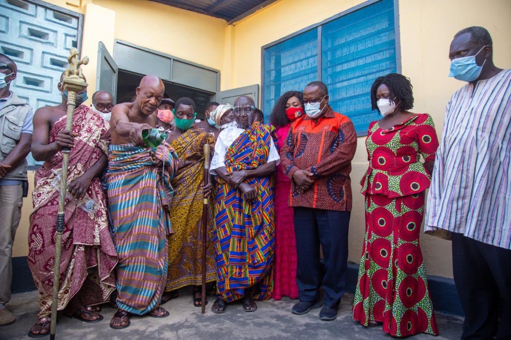 Scores of residents thronged the streets to welcome her home. Before addressing the crowd at the Komenda lorry park, Prof. Naana Opoku-Agyemang first visited the Omanhene of the Komenda Traditional Area, Nana Kojo Kru, to ask for his blessings.