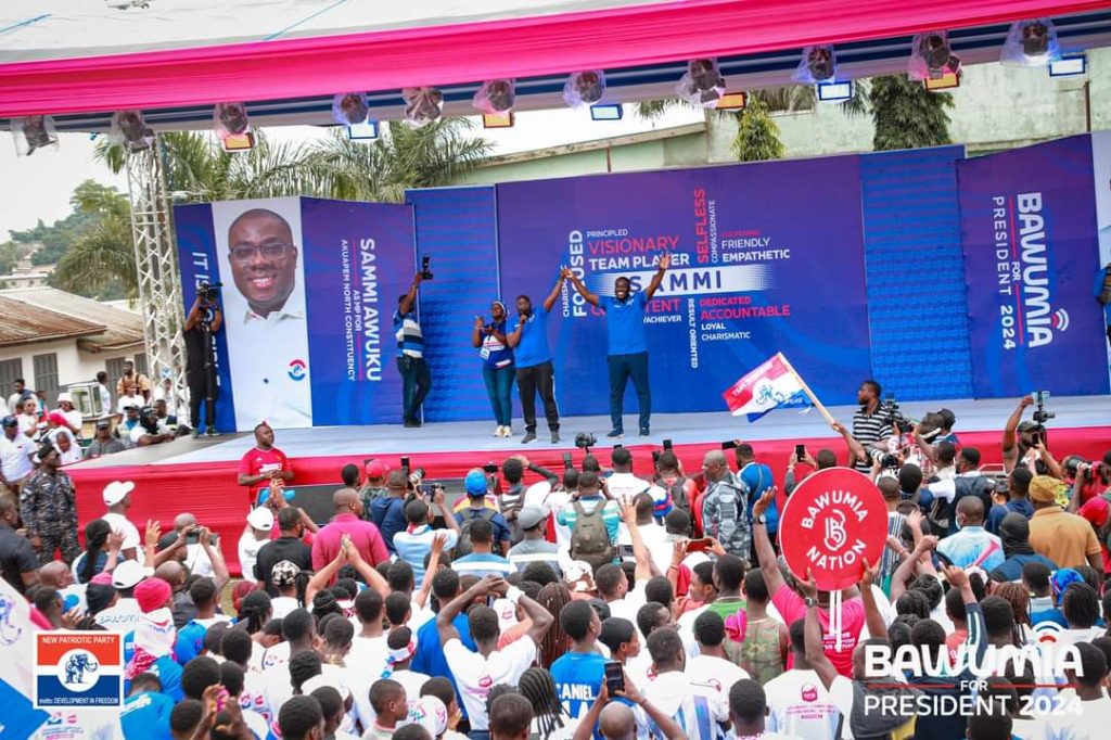 Thousands of NPP supporters and celebrities joined the Presidential Candidate of the New Patriotic Party, Dr. Mahamudu Bawumia, and the Parliamentary Candidate for the Akuapem North Constituency, Sammi Awuku, for the ”Ofie Walk” from Mamfe to Mampong Akuapem in the Eastern Region.