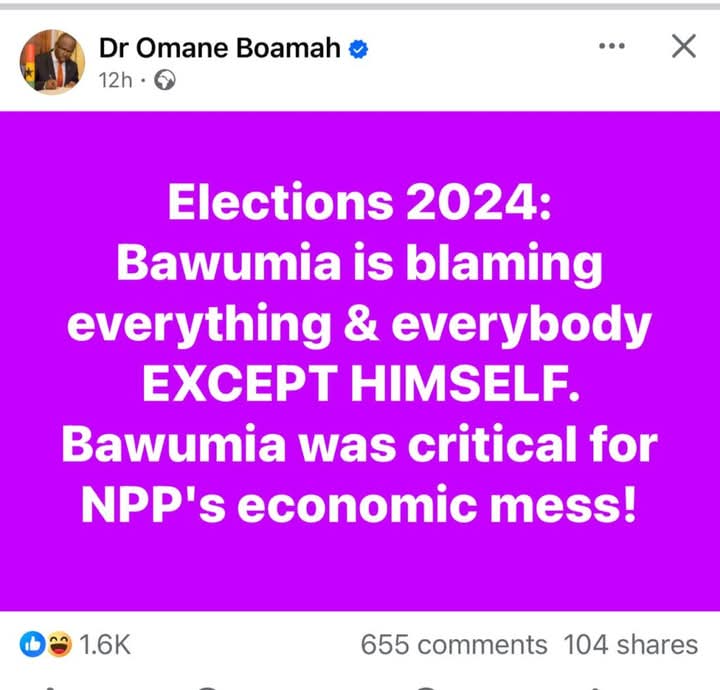 “Elections 2024: Bawumia is blaming everything and everybody EXCEPT HIMSELF. Bawumia was critical for NPP’s economic mess!” Dr. Boamah wrote.