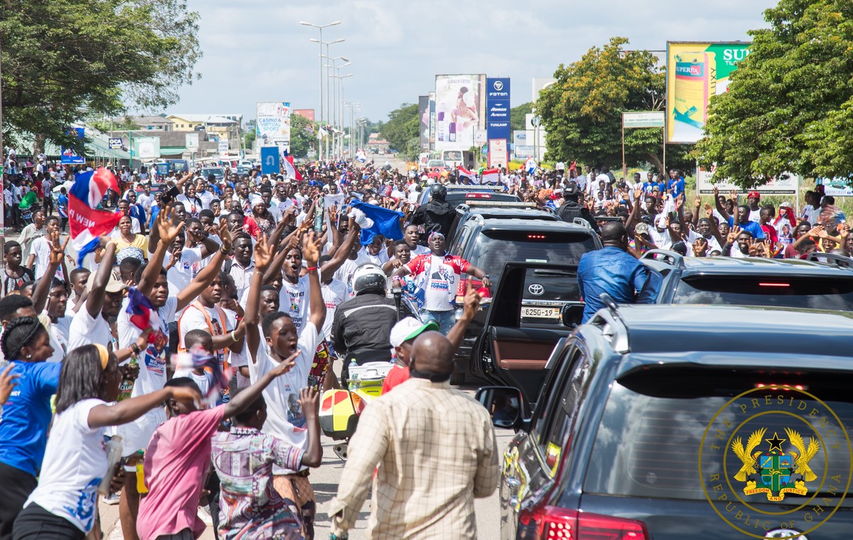The team then proceeded to Kwesimintsim where he addressed teaming supporters. President Akufo-Addo appealed to the people of Western Region to vote for him based on his performance in government.