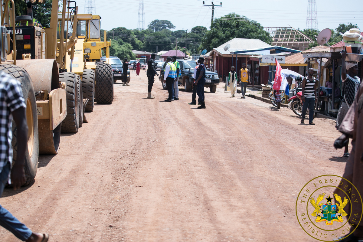 Prior to the commissioning ceremony, the President inspected ongoing work on the construction of town roads in Kete Krachi and Chinderi, the capitals of Krachi West and Nchumuru Districts respectively.
