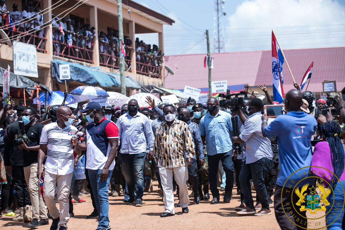 Prior to the commissioning ceremony, the President inspected ongoing work on the construction of town roads in Kete Krachi and Chinderi, the capitals of Krachi West and Nchumuru Districts respectively.