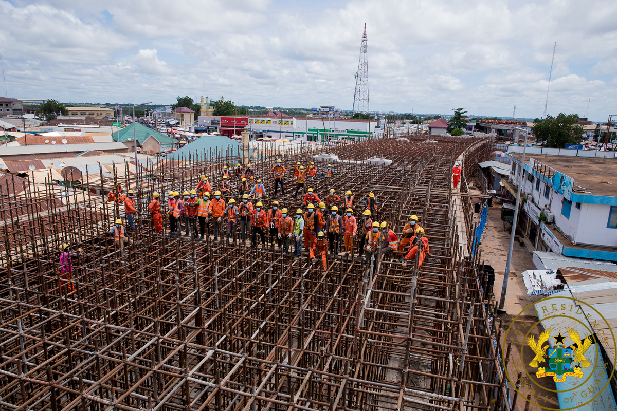 According to the Director of the Department of Urban Roads, Alhaji Abass Awolu, who took President Akufo-Addo on a tour of the project, the Tamale interchange, which is a two-tier interchange, with a total length of 1kilometre bridge and ramps, and 5 kilometres of ancillary road works, is eighty percent (80%) complete.