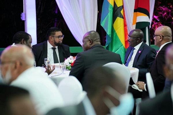 Vice President Mahamudu Bawumia who is in the Co-operative Republic of Guyana on an official visit has been hosted to an Official Dinner by President Dr. Irfaan Ali and First Lady Mrs. Arya Ali of the Republic of Guyana.