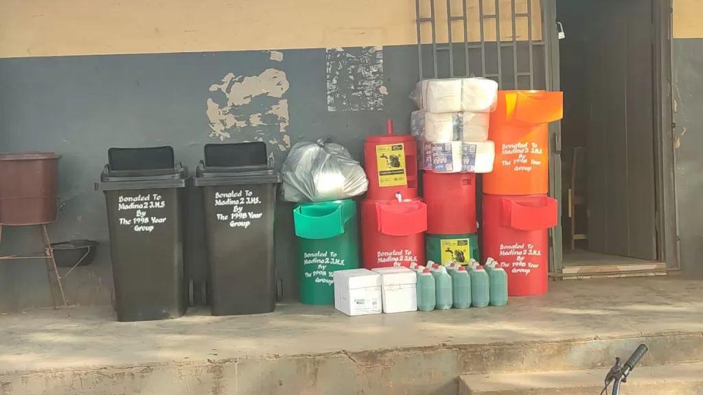 The 1998 year group of Madina MA 2 JHS in Accra has donated assorted sanitary and other items to the school.The donation formed part of the group’s resolve to extend a hand of help to the school which nurtured its members over two decades ago.