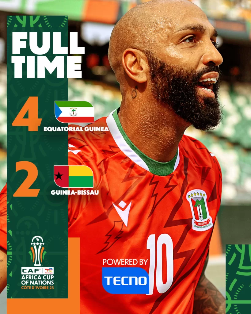 Equatorial Guinea, in their second group game against Guinea-Bissau, put on a wonderful display at the Ebimpe Olympic Stadium as they trashed Guinea-Bissau by 4:2 on Thursday, January 18, 2024.