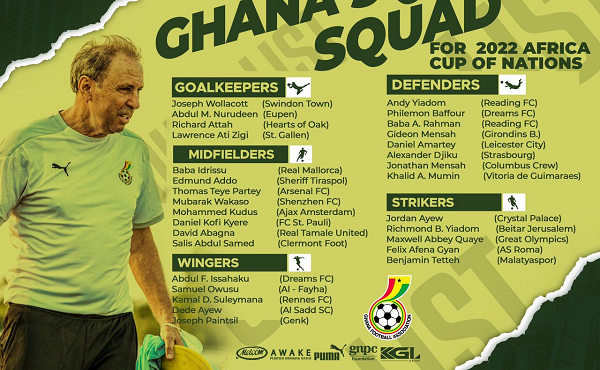The squad was announced at the Ghana Football Association on Tuesday 21st December 2021.