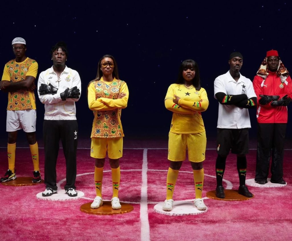 Black Stars kit sponsor PUMA has unveiled stunning pictures of Joey B, Stonebwoy, Gyakie, Smallgod, Arathejay, and football icon Abedi Pele modelling Ghana’s new jersey.