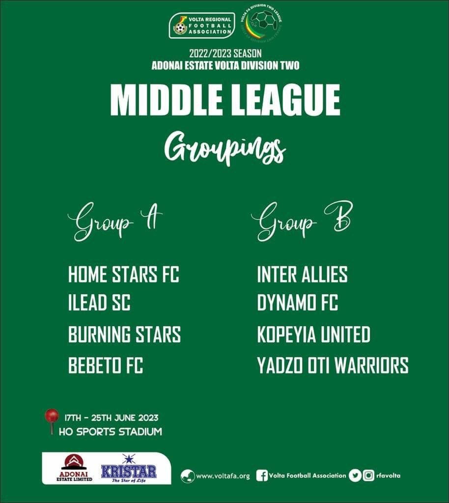 Former Premier League side, Inter Allies FC and Seven other clubs have qualified for the 2022/23 Adonai Estate Volta Regional Division Two Middle League scheduled for June 17 in Ho.