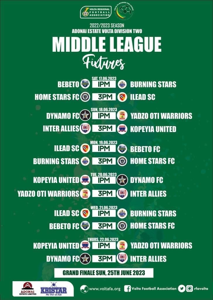 The Middle League will commence on the 17th of June to the 25th of June 2023 at the Ho Sports Stadium.