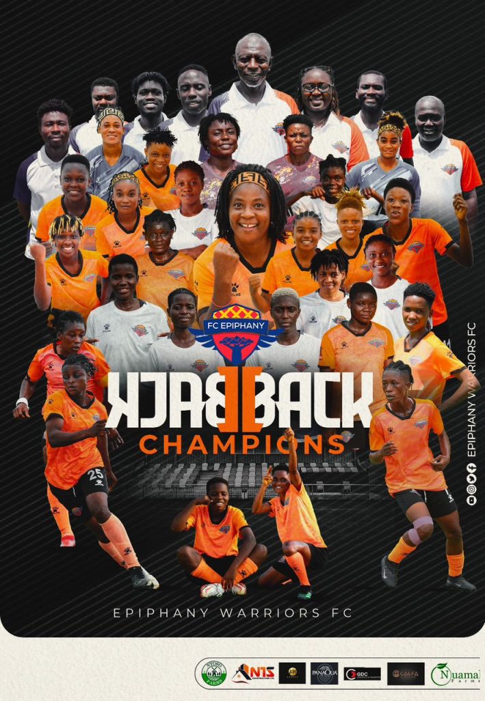 Epiphany Warriors will officially be crowned winners of the GARFA Division 1 champion of champions for the second consecutive season after Captain Gifty Acheampong converted the fifth kick for her side. The win meant the Warriors had completed a historic treble after winning their Division 1 group, the GFA Southern Zone Middle League, and the GARFA Division One Champions of Champions.