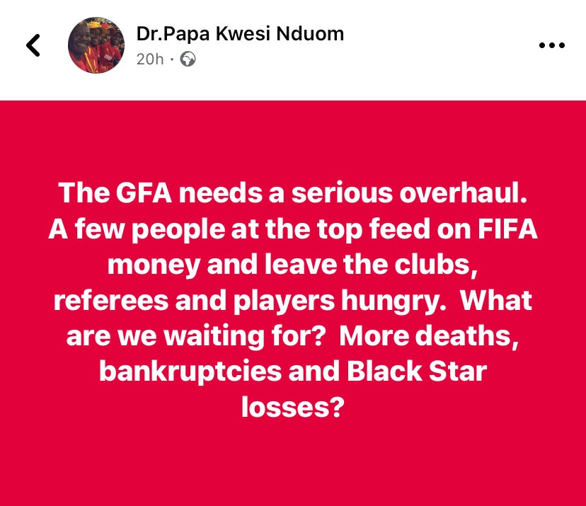 Ndoum’s frustration was palpable as he questioned the nation’s complacency in the face of repeated tragedies and financial instability affecting the Black Stars. He emphasized, “The GFA needs a serious overhaul. A few people at the top feed on FIFA money and leave the clubs, referees, and players hungry. What are we waiting for? More deaths, bankruptcies, and Black Stars losses?”