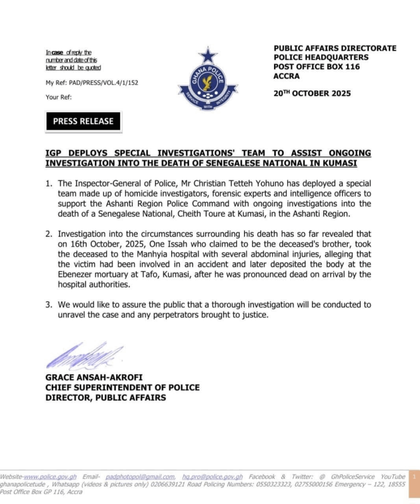 This team will support the Ashanti Regional Police Command in uncovering the facts and ensuring justice is served. “The initiative aims to complement ongoing efforts by the regional command,” the statement said.