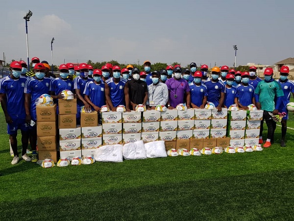 Marina Distribution Ghana, distributors of Don Simon tropical fruit juice has presented Don Simon Fruit Juice worth thousands of cedis and branded T-Shirts, footballs and caps to Accra Great Olympics at their training grounds at La McDan Town Park.
