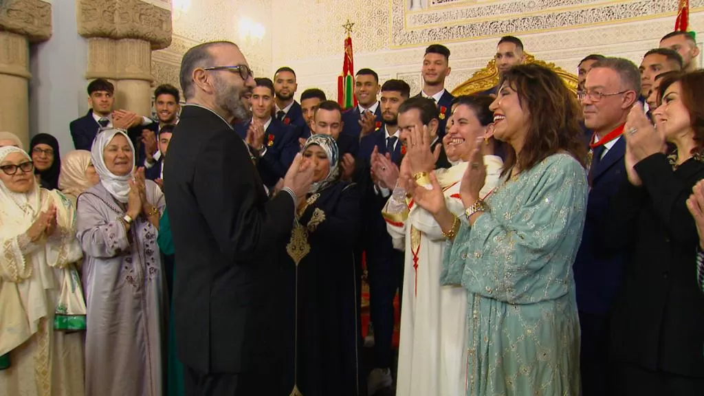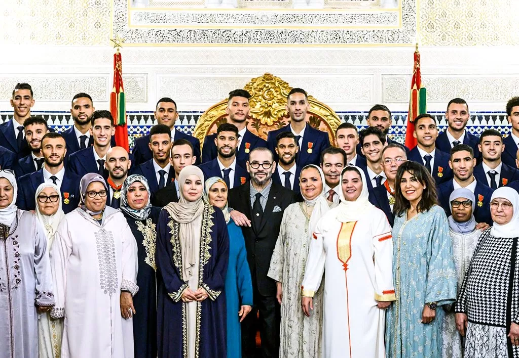 During this audience, the Sovereign decorated president of the Royal Moroccan Football Federation, Fouzi Lakjaâ, the coach of the National Team, Walid Regragui, and the players of the national team, who were accompanied by their mothers, with Royal Wissams.