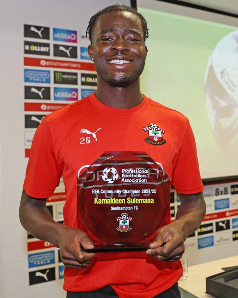 Ghanaian forward Kamaldeen Sulemana has been named Southampton’s Professional Footballers Association (PFA) Community Champion for the 2024/25 season. The award recognizes his outstanding dedication to community outreach through the Saints Foundation, highlighting his efforts beyond the football pitch to make a positive impact locally.