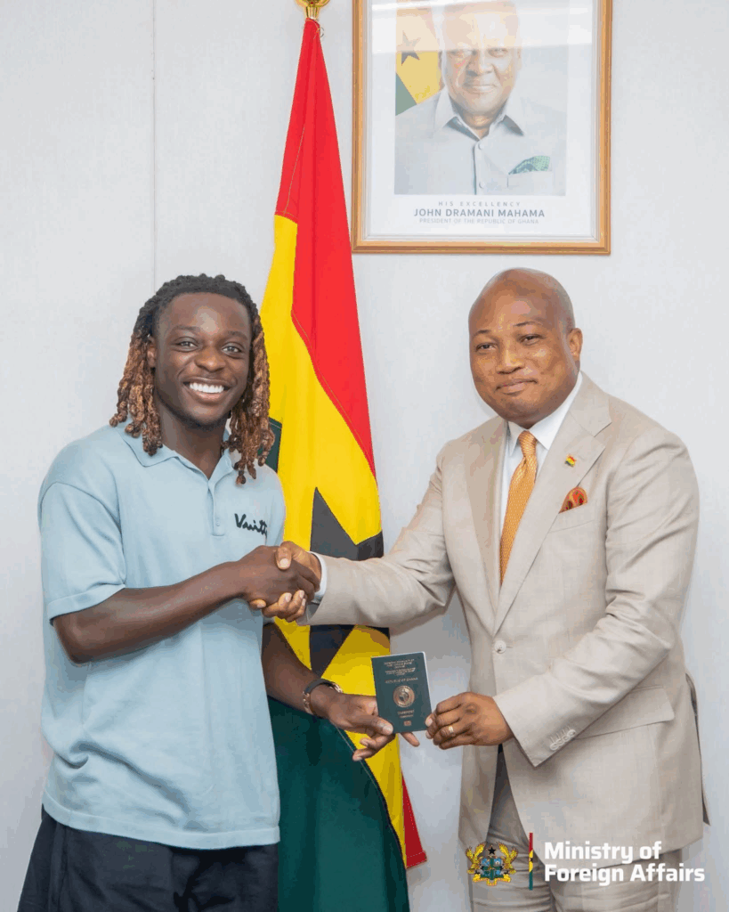 Belgian professional footballer of Ghanaian descent, Jérémy Baffour Doku, currently playing for Manchester City, has officially received his Ghanaian passport for the first time, an important step reflecting his strong desire to maintain ties with his Ghanaian roots despite representing Belgium internationally.