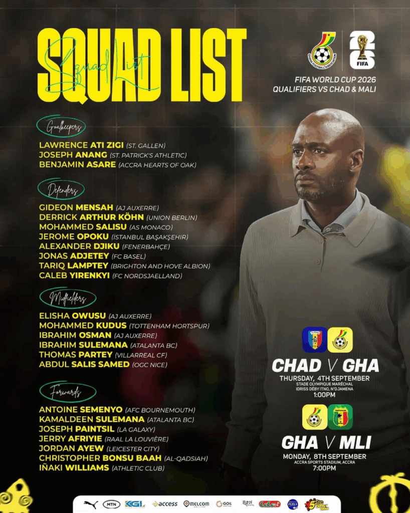 Black Stars head coach Otto Addo has announced his squad for the upcoming World Cup qualifiers, with the team set to face Chad and Mali in intense fixtures that will be pivotal for their advancement.