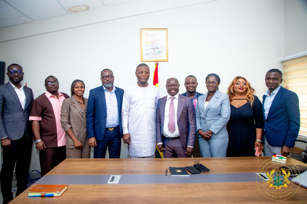 The Sports Writers Association of Ghana (SWAG), led by its President, Kwabena Yeboah, has paid a courtesy call on the Minister for Sports and Recreation, Hon. Kofi Adams, to discuss key areas of collaboration and the role of sports journalism in national development.
