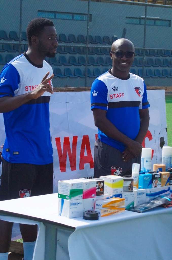 Receiving the medical items on behalf of WAFA SC, Managing Director Mr. Yan Gôseng expressed his gratitude to Professor Quartey.