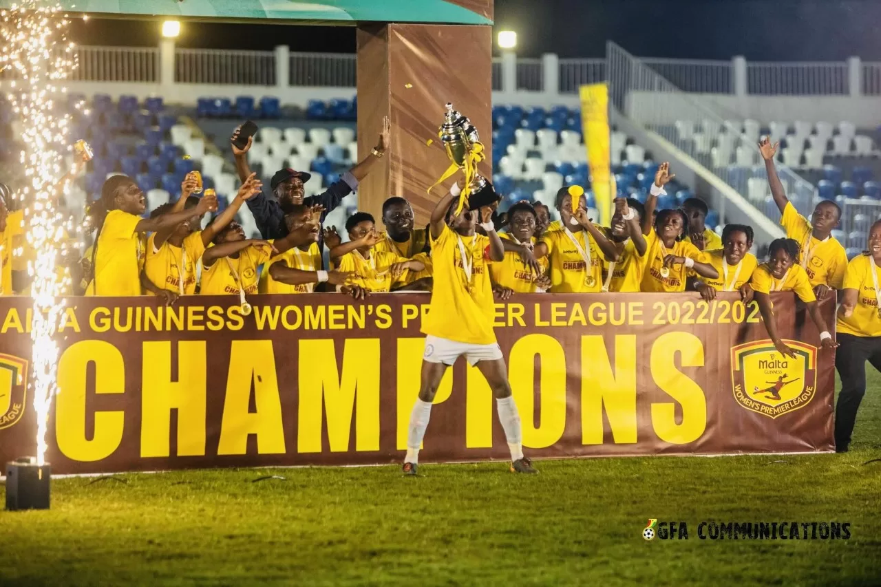 Techiman based Ampem Darkoa Ladies Football Club has been crowned champions of the 2022/2023 season after an intense match against a familiar foe Hasaacas Ladies. The match which was honoured at the Dr. Kwame Kyei Sports Complex in Kumasi was watched by hundredtha of football fans at the venue ans thousands watching via social media.