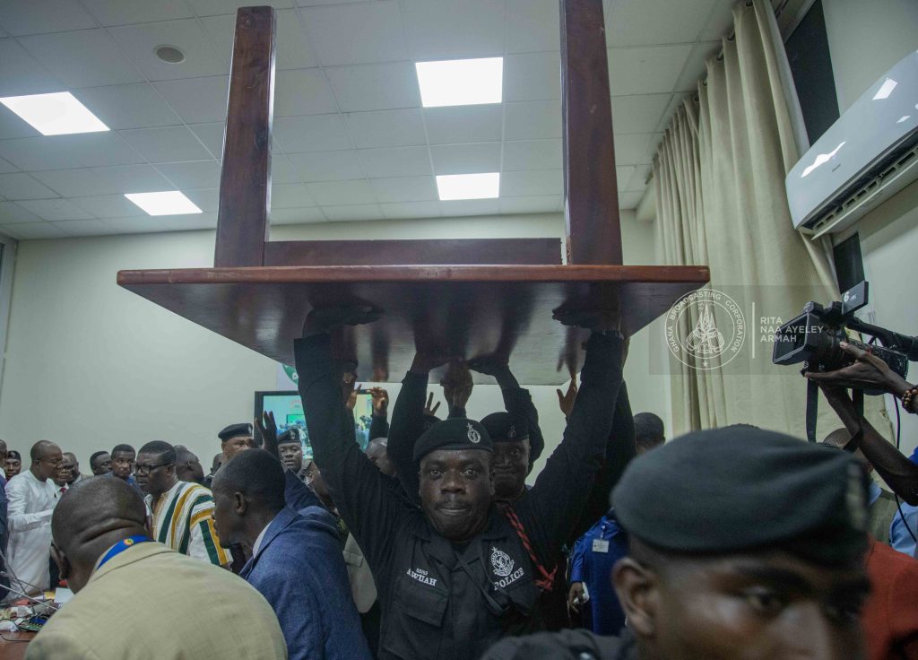 Chaotic scenes between the Majority and Minority sides of the appointment committee in Parliament . Pictures by Rita Naa Ayeley Armah Read more here