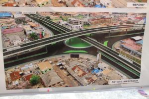The ground level will have re-modelled roundabout whilst the second tier will be an east to west flyover linking the Graphic Road to the Kaneshie-Mallam road.