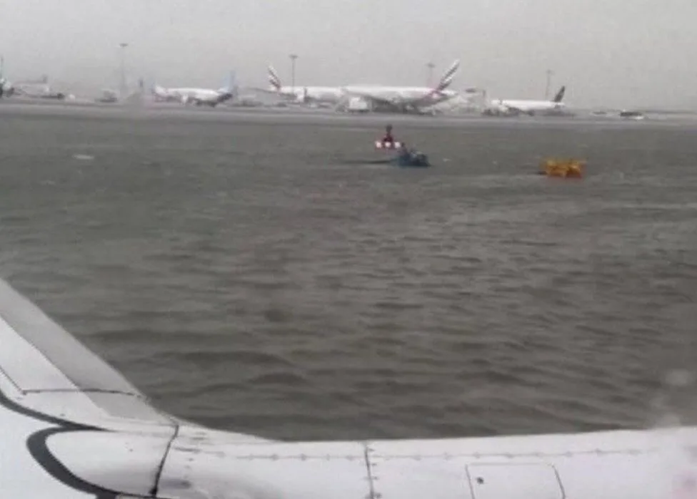 Videos posted on social media showed aircraft ploughing through several inches of water that completely covered the airport’s apron and taxiways.